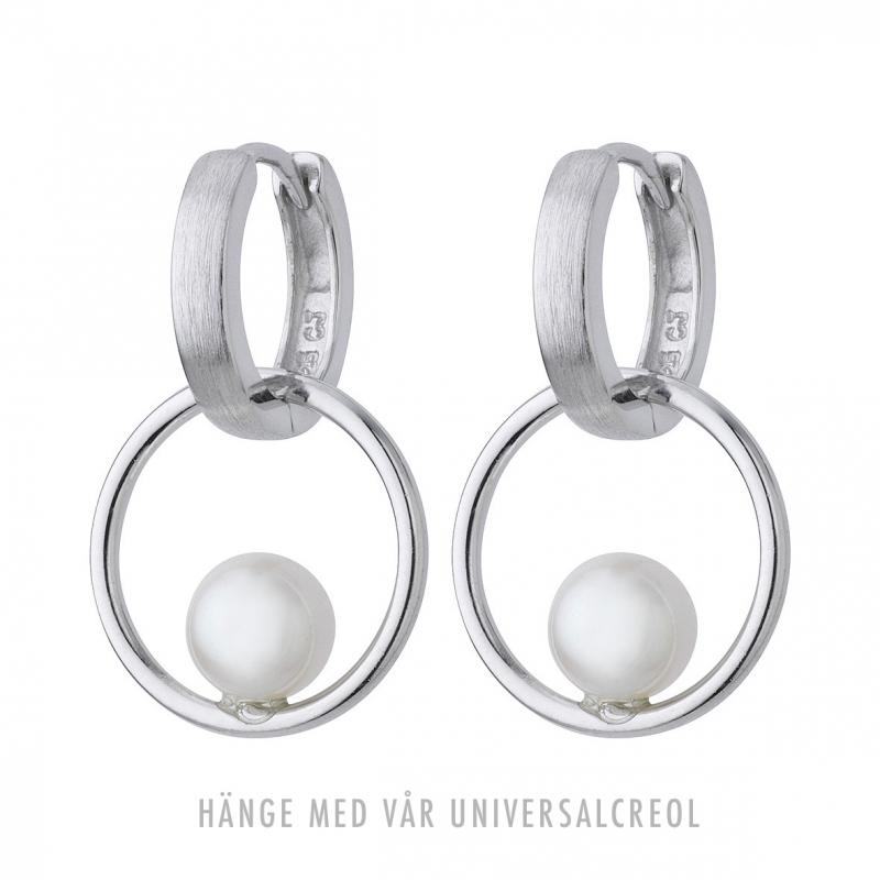 Silverringen med sötvattenpärla är en hyllning till cirkelformen som alltid fascinerat guldsmedsmästare och designer Suzanne Färnert. Ett klassiskt örhänge som aldrig går ur tiden. Här i utförandet med vit sötvattenpärla. Mått för hänge: Yttermått ca 15mm. Pärlans storlek 6-7mm.